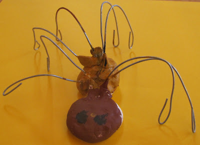 I did the cutting of the wire myself and bent one end ahead of time for safety. The children inserted the eight legs into the clay and positioned them the way they wanted and let them dry.